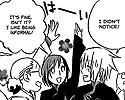 Lenalee was amazed by how skillfull Allen was, and wondered how he could do that. Allen then told her about his past—that his foster parent and he were travelling performers, so he had to learn some acts to earn a living. In exchange, Allen asked Lenalee when did she join the Black Order. Lenalee then told him about her rough past.